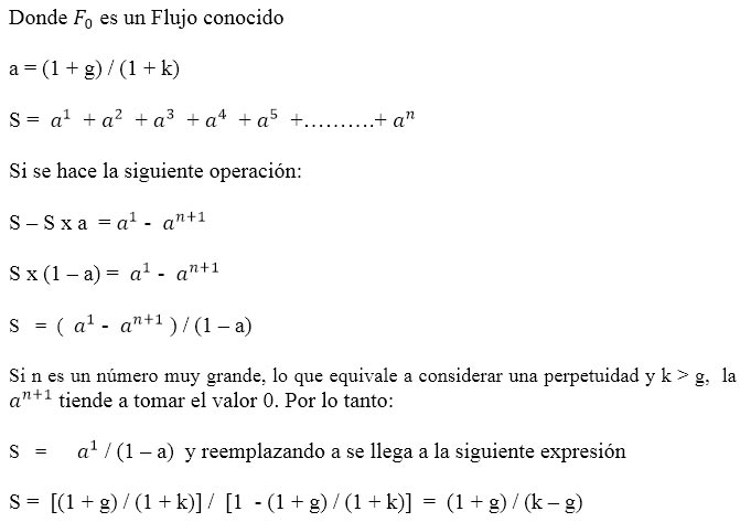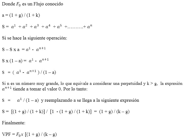 VPF = F0x [(1 + g)/(k - g)] (Ver anexo)